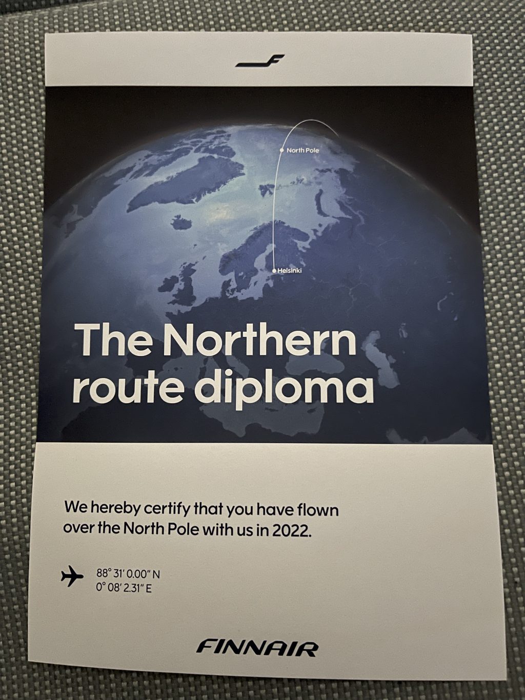 ちなみに帰りのヨーロッパ行きの飛行機は世界情勢によりロシア上空を飛行できないため、北極上空を通ってのフライトでした。北極通過直後に通過証明書なるものをいただきました…。