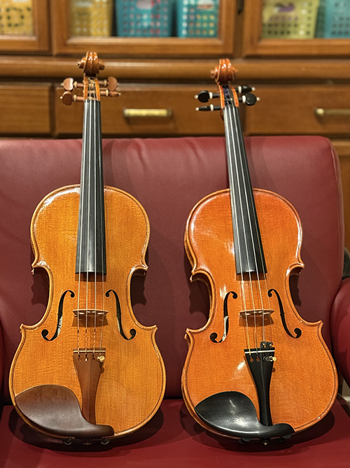 須山氏の手にはTAKAYUKI BATO 2011年製作、尾張氏の手にはKENICHI BATO 2025年製作。