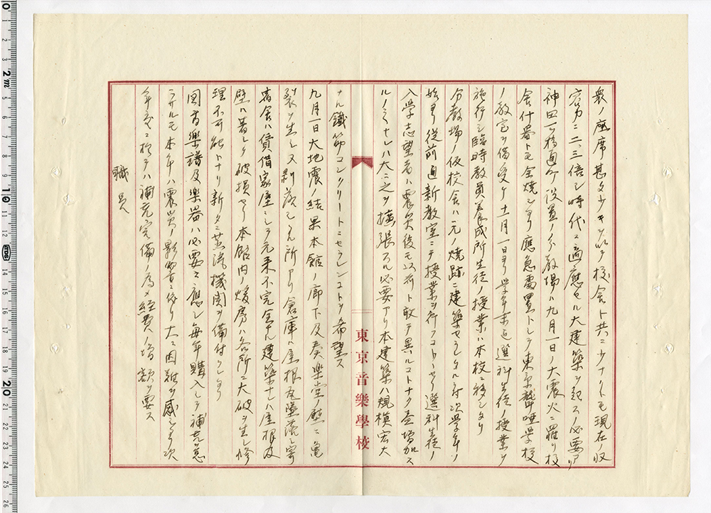 大変な災害に見舞われており、東京音楽学校も本校舎は破損しながら残ったものの分教場が全焼し什器類も