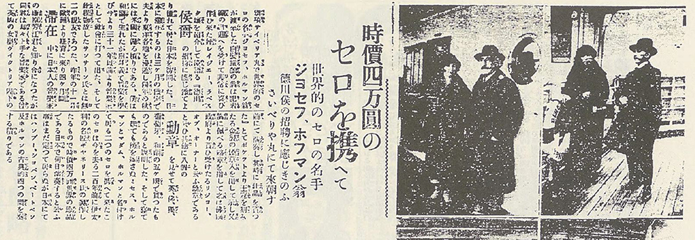 それはホルマン翁とセロの由緒を記したもので、興味深いものと思はれるので茲に再録することゝする。” 徳川頼貞 「薈庭楽話」(昭和16年私家版)