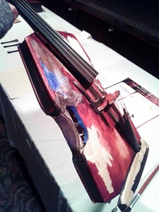 日本ではなかなか見ることの出来ない著名な製作者の作品に混じり、バルサ材で作られた奇抜なデザインのバイオリンが展示してあったのです。