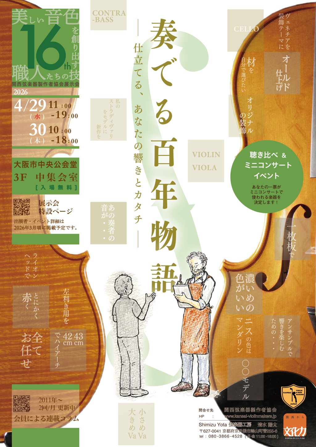 > 第16回 関西弦楽器製作者協会展示会開催のお知らせ